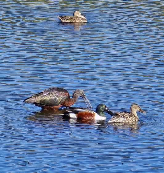 Friday, Jan. 9, warmed gradually and proved to be a superb day of birding. Under the bridge we found Scaup and six Loons. Ducks were plentiful—Blue- and Green-winged Teal, Northern Shoveler, American Wigeon, Mottled and Northern Pintail—along with Hooded Mergansers. Other standout sightings included Black Skimmers, Wilson’s Snipes, American Avocet, Yellow- and Black-crowned Night-Herons, a Reddish Egret, and numerous egrets and herons. The day finished with a total of 68 species.