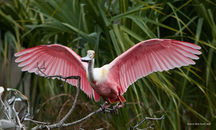 Nine eager birders kicked off the two-day event on Jan. 8 at Orlando Wetlands. It was the coldest I can remember there: steady, blizzard-like winds blew from every direction rather than intermittent gusts. Despite the weather, highlights included many Roseate Spoonbills, a Bald Eagle attended by vultures while it ate a Common Gallinule, and excellent views of a female Vermilion Flycatcher. We tallied 39 species. After a brief rest at our residences, we met for dinner at Dixie Crossroads.